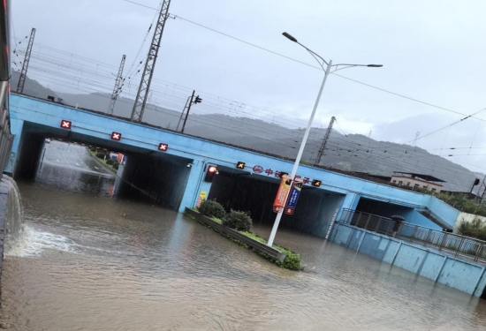 經(jīng)過現(xiàn)場察看,由于短時間降雨量太大,龍津河水位暴漲高于通道出口頂標高,河水倒灌至下穿通道導(dǎo)致交通中斷,下穿通道水泵房三臺水泵全部啟動抽水也無法滿足排水要求。公司防汛小組到達現(xiàn)場后,連夜組織人員拉好警戒線,設(shè)置警示標志,防止車輛進入下穿通道,并調(diào)度4輛應(yīng)急車輛及時排水并清洗路面;同時,提前與鐵路部門、交警部門聯(lián)系,暫時封閉該段線路。經(jīng)過6小時的不斷抽水,路面已基本暢通,搶險過程未發(fā)生任何險情和人員傷亡。