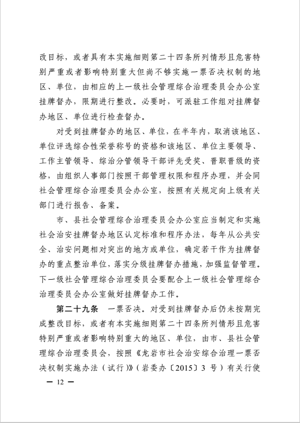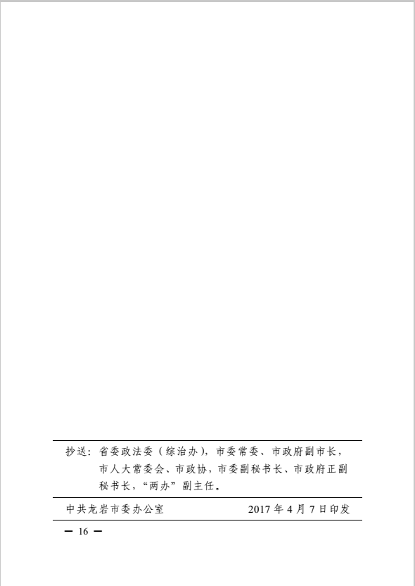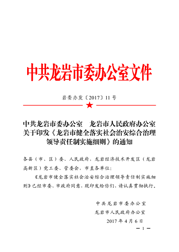 龍巖市健全落實社會治安綜合治理領導責任制實施細則(巖委辦發(fā)【2017】11號)