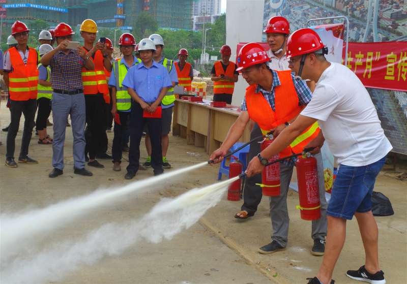 6月16日是“全國(guó)安全生產(chǎn)宣傳咨詢?nèi)铡薄.?dāng)日,龍巖城發(fā)集團(tuán)與市城投公司組織人員分別前往中心城區(qū)華蓮西路一期、火車站站前高架橋、龍巖大橋高架橋、龍巖大道四期下穿工業(yè)路通道等四個(gè)項(xiàng)目工地,開展安全生產(chǎn)宣傳活動(dòng)。圖為工作人員現(xiàn)場(chǎng)指導(dǎo)工人使用滅火器。